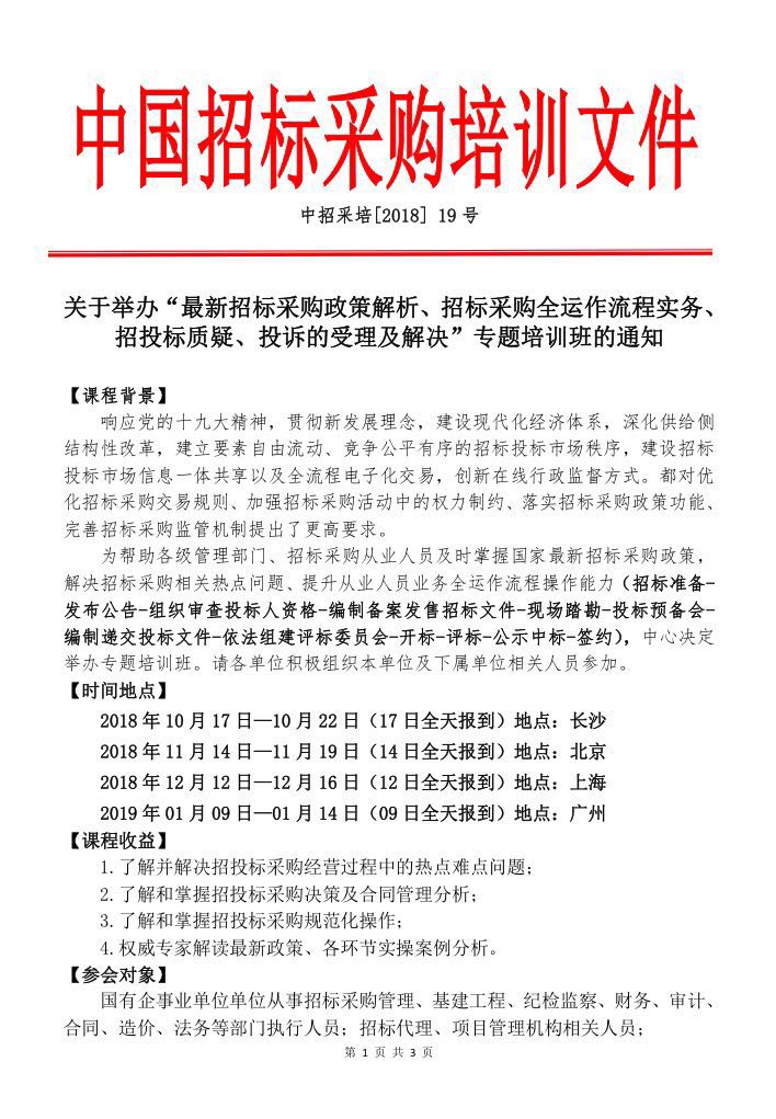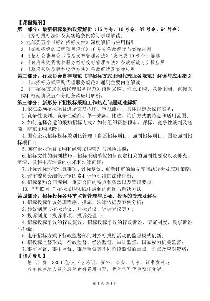 最新招标采购政策解析、招标采购全运作流程实务、招投标质疑、投诉的受理及解决专题培训班