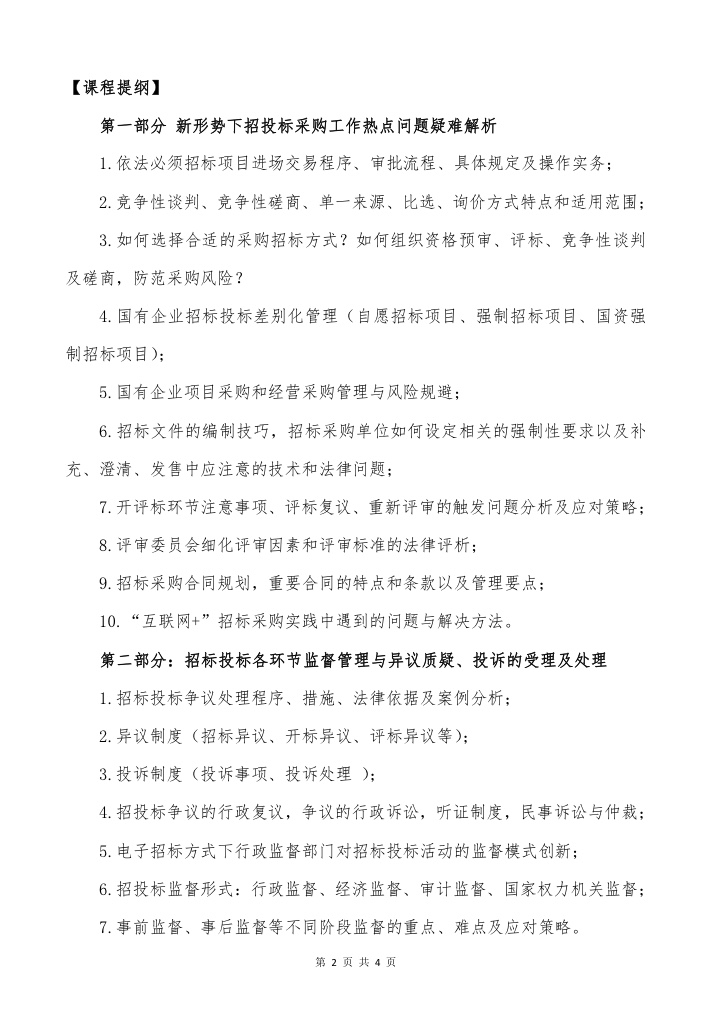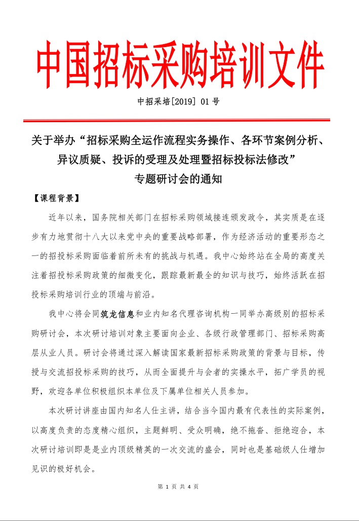 最新招标采购政策解析、招标采购全运作流程实务、招投标质疑、投诉的受理及解决专题培训班