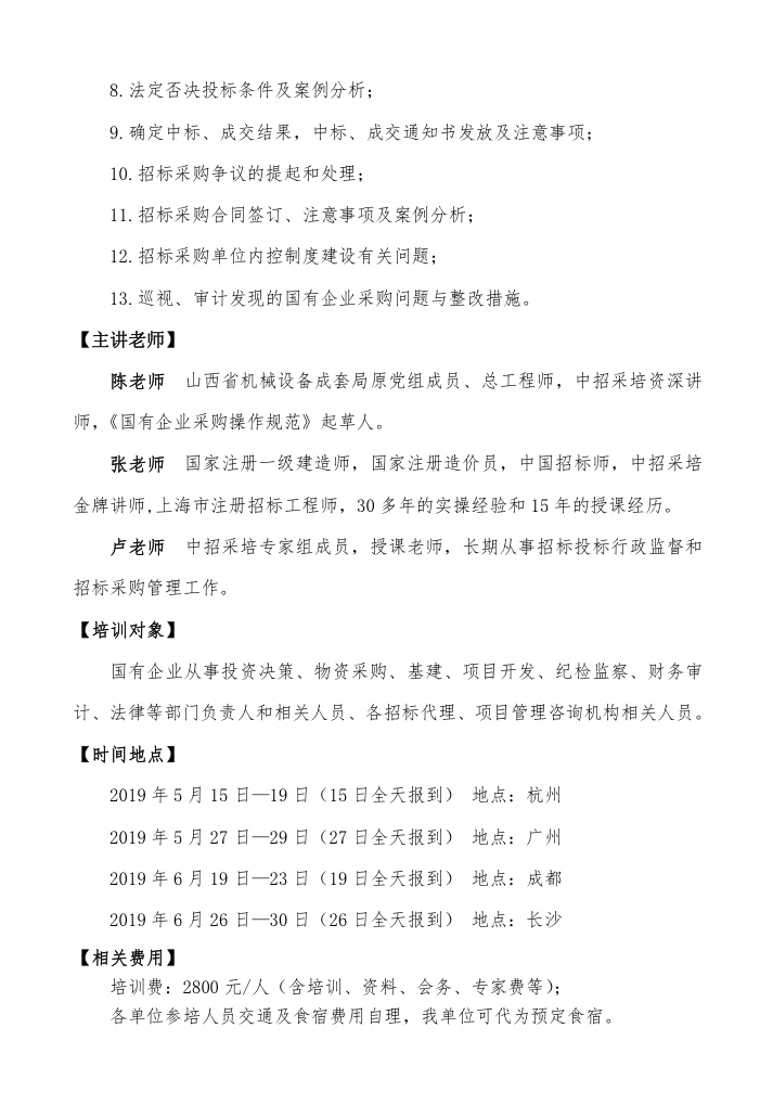 (6月长沙班)2019《国有企业采购操作规范》解读暨企业采购与招标全流程实务及案例分析培训班