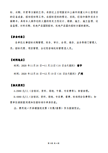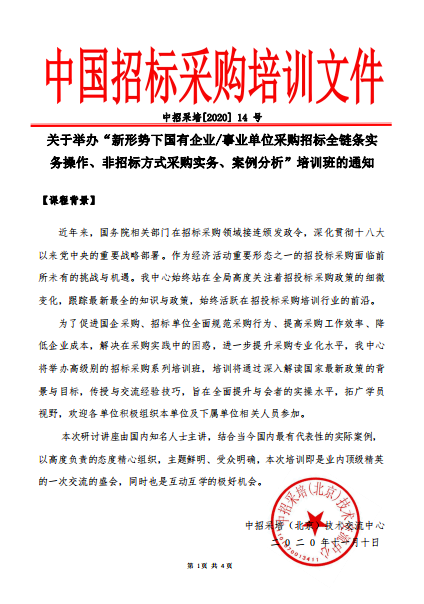2020年12月广州班关于举办“新形势下国有企业/事业单位采购招标全链条实务操作、非招标方式采购实务、案例分析”培训班的通知