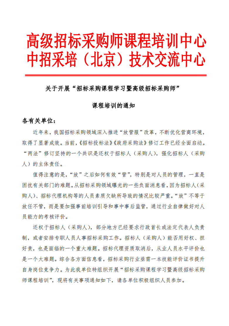 【10-12月】关于开展“招标采购课程学习暨高级招标采购师” 课程培训的通知