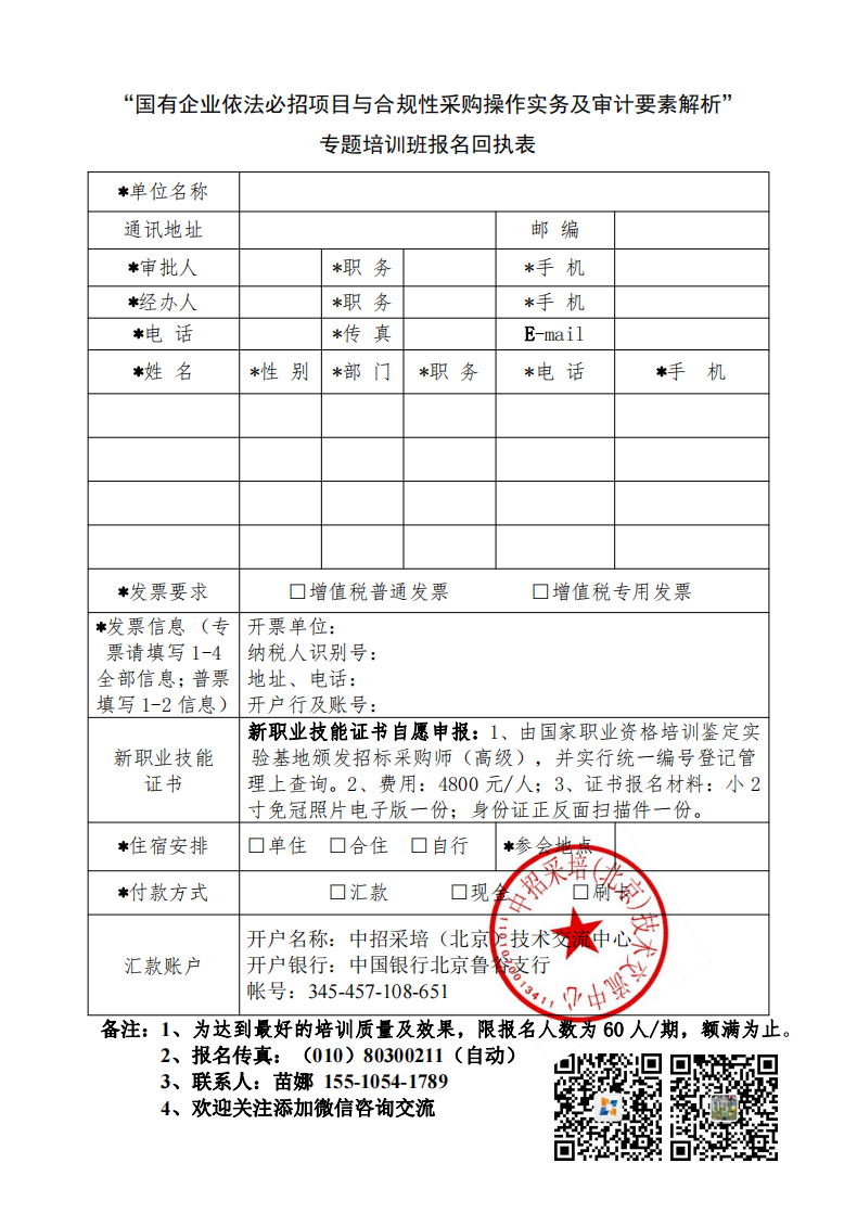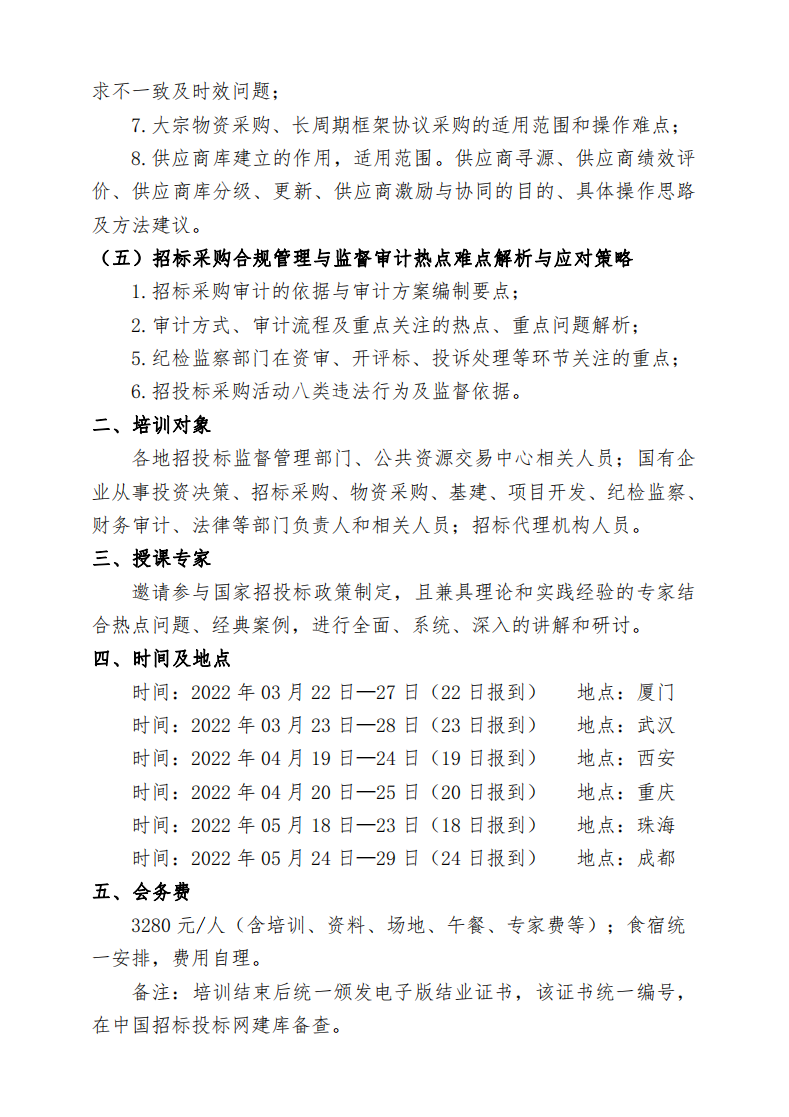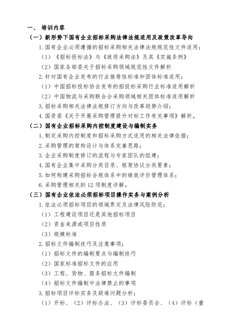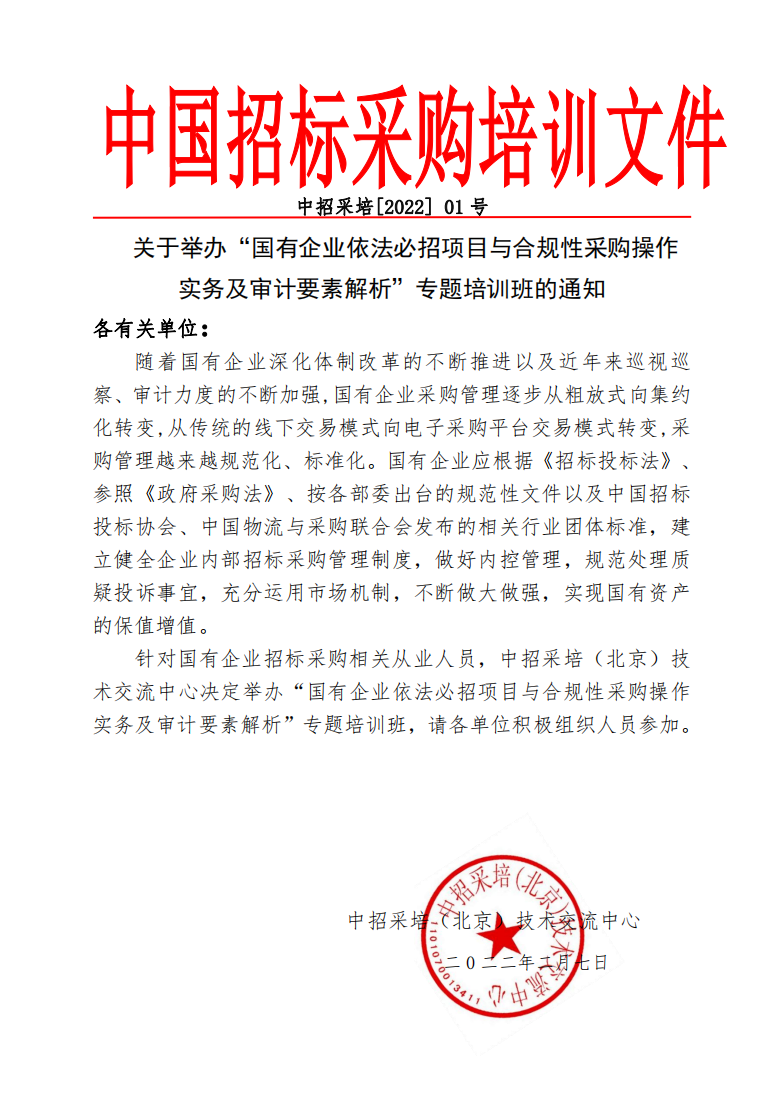 关于举办“国有企业依法必招项目与合规性采购操作 实务及审计要素解析”专题培训班的通知