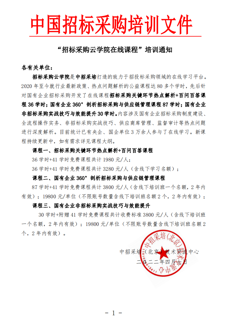 “招标采购云学院在线课程”培训通知