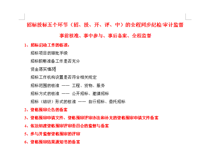 招标投标五个环节(招、投、开、评、中)的全程同步纪检/审计监督